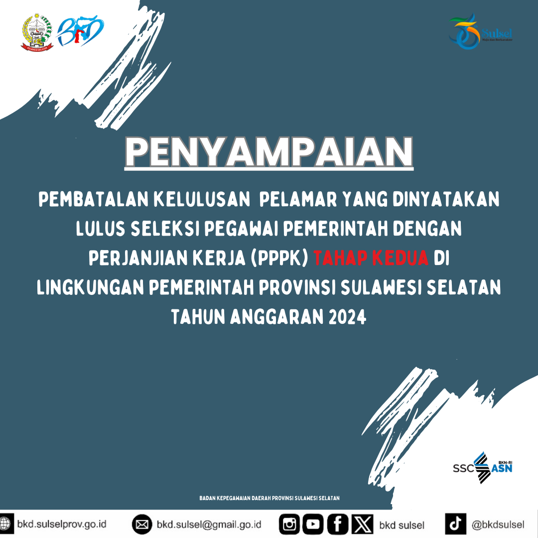 Makassar-, Pemerintah Provinsi Sulawesi Selatan kembali membuka kesempatan bagi Warga Negara Republik Indonesia yang berminat mengikuti Seleksi Pengadaan Calon Aparatur Sipil Negara Formasi PPPK Jabatan Fungsional Guru, Tenaga Kesehatan dan Tenaga Teknis Tahun Anggaran 2023, sebagaimana ketentuan dan rincian formasi sebagai berikut :